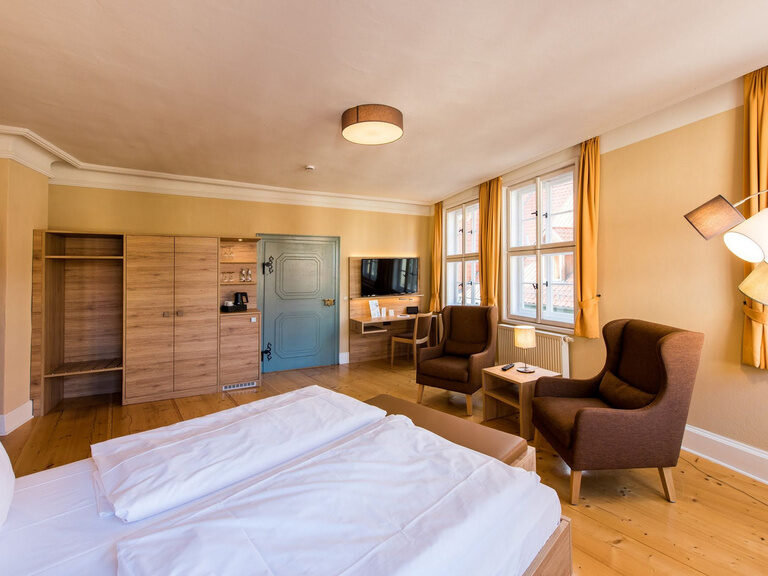 Unsere Ferienwohnungen befinden sich ebenfalls in historischen Fachwerkhäusern und sind mit viel Liebe zum Detail eingerichtet. Ankommen und Wohlfühlen ist hier Programm: Die Ferienwohnungen sind im modernen, historischen Stil eingerichtet.