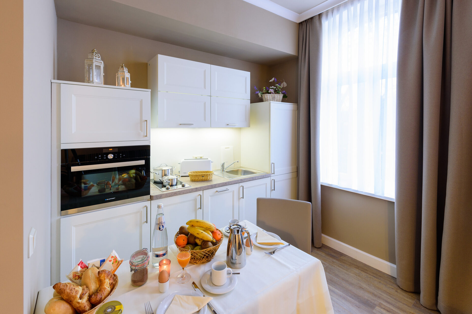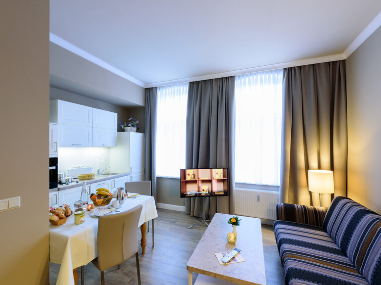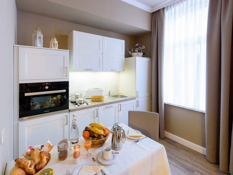 Bitte beachten Sie, dass aufgrund des Denkmalschutzes in unseren Appartements und Ferienwohnungen kein Fahrstuhl vorhanden ist.