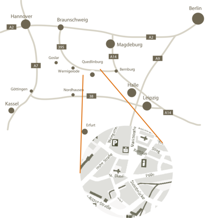 Unserer Ferienwohnungen liegen alle in der Altstadt und somit im Zentrum von Quedlinburg. In nur wenigen Schritten erreichen Sie den Marktplatz und die Sehenswürdigkeiten von Quedlinburg. Schlossberg, Klopstockhaus, Lyonel-Feininger-Galerie oder den historischen Marktplatz erreichen Sie gut zu Fuß. Von Quedlinburg aus erreichen Sie in nur wenigen Fahrminuten eine Vielzahl an Sehenswürdigkeiten im Harz.